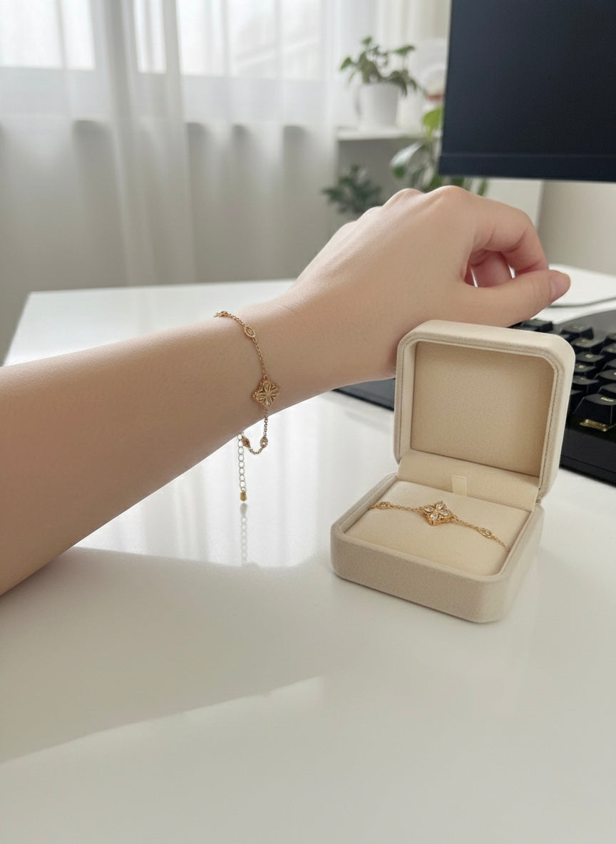This bracelet features a single pendant shaped as a sparkling diamond star, capturing the brilliance of the night sky in a delicate and refined design. The star pendant rests gracefully, making it a subtle yet radiant statement piece.